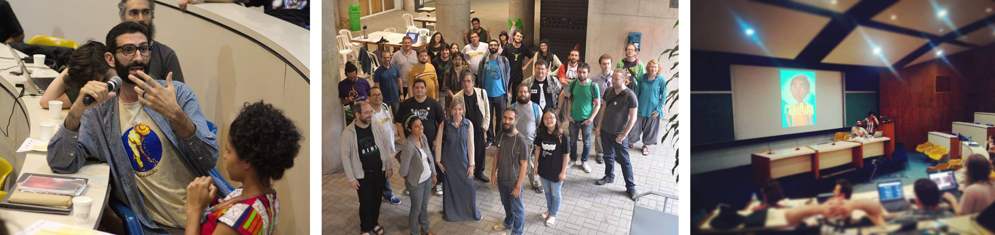 Encontro internacional onde hackers, artistas e designers se reunem em torno dos softwares graficos livres. Este ano foi no Rio de Janeiro e foi bom rever os amigos João Bueno, Felipe Sanches, Valessio Brito, Aurélio Heckert, Tiago Bugarin e Fabianne Balvedi, claro além da maioria dos hackers do Gimp e outros projetos. Também durante o evento conhecemos o Open Source Publishing, um coletivo que também desenvolvem trabalhos de design e tipografia na Bélgica. Durante o evento apresentamos um showcase da Gunga e nosso curta Malaika, e também, o projeto Kdenlive. Uma das surpresas foi conhecer o Murilo do wikilab e Hisham do Lua e o artista Americo Gobbo.