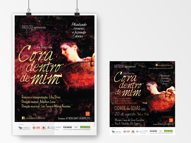 O espetáculo Cora Dentro de Mim – Plantando Roseiras & Fazendo Doces foi idealizado pela atriz e escritora maranhense Lília Diniz e contemplado pelo Prêmio Funarte Mirian Muniz/2014. Em cena, a partir da feitura de doces em um fogão artesanal real, Lilia Diniz percorre o universo e a obra da escritora goiana Cora Coralina, revivendo a cozinha onde a velha doceira recebia suas visitas, recitava seus poemas e contava suas histórias. O espetáculo é essencialmente pautado na simplicidade, como simples são os versos da escritora doceira. Realizou apresentações, durante o ano de 2015, em cidades do DF e de Goiás.