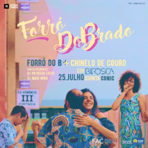 O Forró do B aterrou na cidade e convida a todos pra virar o disco e descobrir o outro lado! Derreter ouvindo Forró descolado, tocado por quatro perigosos cangaceiros de Brasília, enquanto mostras o swing do teu pé. O forró mais charmoso da cidade, em um evento aberto, colaborativo e democrático.