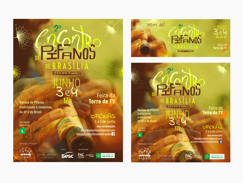 De 03 a 05 de junho de 2017 o II Encontro de Pífanos de Brasília levou ao público de Brasília um pouco da diversidade de bandas de pífano que alegram e encantam o nosso Brasil, atrações locais e grandes nomes da música brasileira, unindo pifeiras e pifeiros, os novos e os mais velhos.